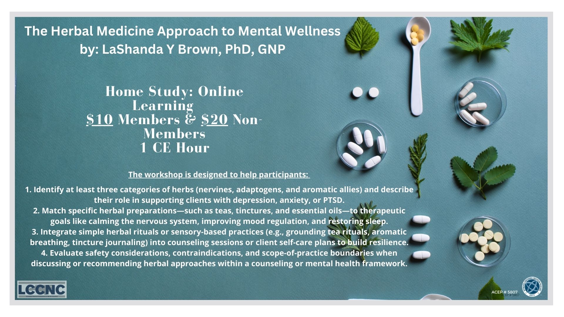 3. Integrate simple herbal rituals or sensory-based practices (e.g., grounding tea rituals, aromatic breathing, tincture journaling) into counseling sessions or client self-care plans to build resilience.