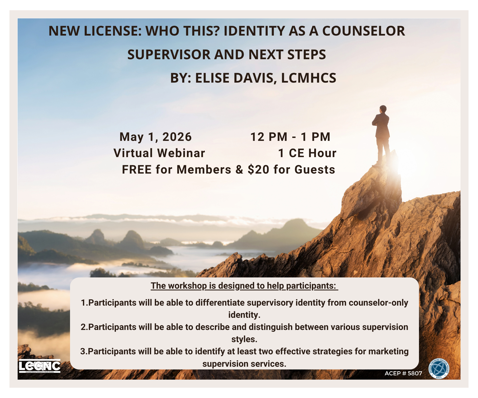This one-hour First Friday presentation reflects on the first year following new licensure as an LCMHCS, exploring the journey from licensing to real-world application. Participants will gain insight into the variety of experiences that often accompany this transition, with a focus on self-compassion and mindful attention to personal needs. The session will also review different Supervisory Styles to help supervisors develop their professional identity distinct from their role as a counselor. Additionally, the presentation will address the critical yet often overlooked aspect of branding and marketing a new supervision service.