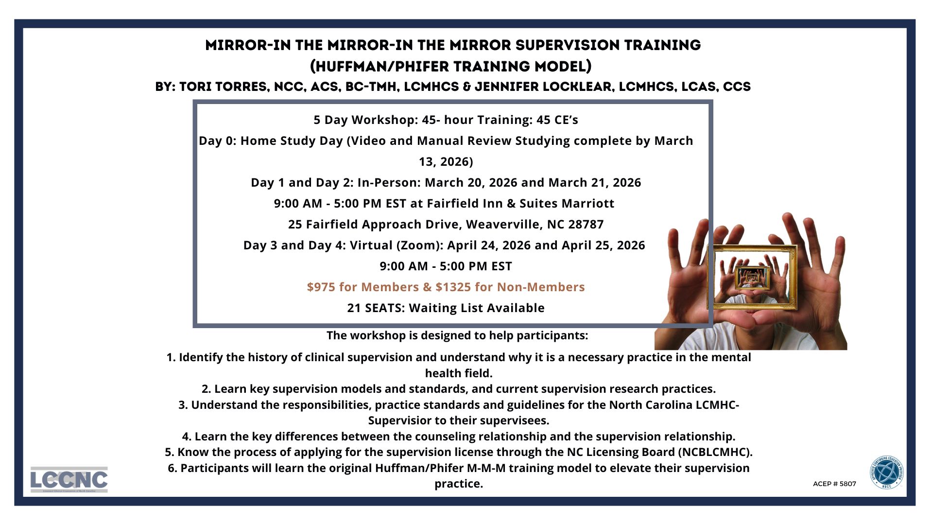 Location: In-Person on March 20-21, 2026 & Virtually on April 24-25, 2026, Fairfield Inn & Suites Marriott , 25 Fairfield Approach Drive, Weaverville, NC 28787